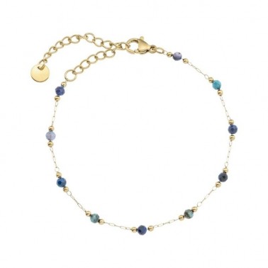 Pulsera acero mineral Azul * Referencia: PA2298 * Materiales: Acero Inoxidable Bañado en Oro de 14 Kts * Cierre: Mosquetón * Tamaño: 14+5 cms...