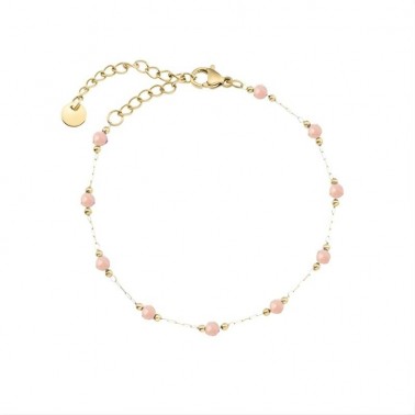 Pulsera acero mineral Rosa * Referencia: PA2309 * Materiales: Acero Inoxidable Bañado en Oro de 14 Kts * Cierre: Mosquetón * Tamaño: 14+5 cms...