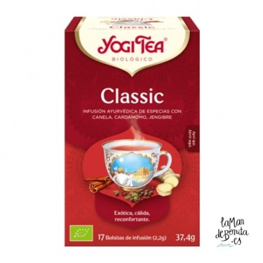 Marca: Yogi Tea Variedad: Classic Esencia: Comodidad y abundancia Ingredientes: Canela (50%), cardamomo (15%), jengibre (15%), clavo, pimienta...
