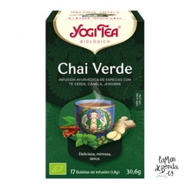 Marca: Yogi Tea Variedad: Chai Verde Esencia: Hechizo alegre Ingredientes: Canela (30%), hierbabuena (21%), té verde (20%), jengibre (9%),...