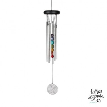Campana de viento 7 Chakras Plateada Woodstock Precio 32,90 € Campana de viento 7 Chakras Woodstock * Ref: MMCC7 * Medidas: 44cm * Materiales: 6 tubos de aluminio, madera de fresno color negro, realce...