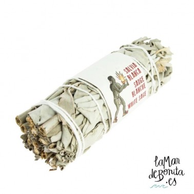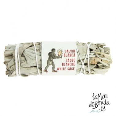 Su nombre científico es Salvia Apiana: viene del latín salvare - curar. Crece de forma silvestre en el suroeste de Estados Unidos, principalmente en California y el noroeste de México. Es una planta medicinal reconocida. La mayor parte de sus propiedades se concentra en las hojas, que absorben la energía del sol y producen una gran cantidad de aceites esenciales que aromatizan la planta. Desprenden un aroma muy agradable que aporta una sensación de bienestar. Estudios científicos han revelado que tanto las hojas como los tallos contienen jaceosidina, una molécula conocida por su acción antiinflamatoria y antibacteriana.