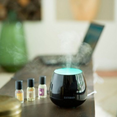 Especialmente diseñado para funcionar con concentrados de perfume Estéban, este difusor también puede utilizarse con algunos aceites esenciales para una función de aromaterapia. Funciona con un sistema de ultrasonidos para la nebulización en frío.