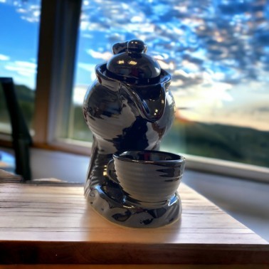 Su forma de tetera hace que parezca un chorro de té servido en la taza.