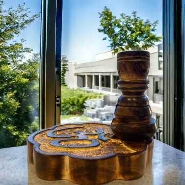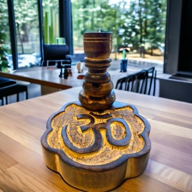 Esta Preciosa fuente tallada en madera de mango de forma artesanal, cuenta con un OM budista donde se vierte en humo simulando el agua que lo cubre.. La simbología es preciosa junto con la historia del budísmo, pero eso ya es otro cuento. En la parte superior de metal, cuenta con un soporte donde colocar el cono de reflujo para que no se queme la madera, y así recircular el humo por sus orificios.