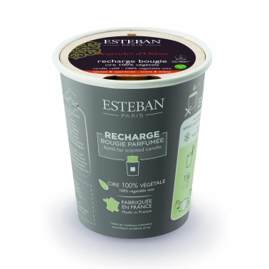 Las velas aromáticas y recargables de Esteban Paris están fabricadas en Francia con cera 100% de Origen Vegetal, así se evita que cuando la cera arda, no emita al ambiente de tu hogar productos químicos contaminantes o nocívos.