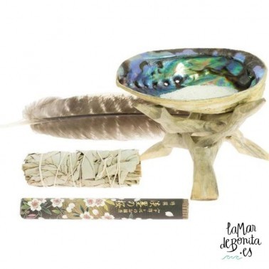 La concha del abulón o abalone es un precioso objeto ritual. Colocando un poco de marmolina en su interior, sirve de cuenco para sahumerios. Su interior de nácar luce bellos reflejos iridiscentes. Se dice que proporciona un sentimiento de protección, pureza y equilibrio. Al sahumar con el abulón se invoca la fuerza divina del fuego y el espíritu del agua en un ritual de limpieza energética.