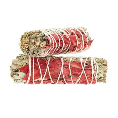 Salvia Sangre de Dragón: La resina del Calamus draco, conocida como Sangre de Dragón, impregna este atado con su bello color y su cualidad antioxidante. De su poder ancestral se dice que protege y purifica.