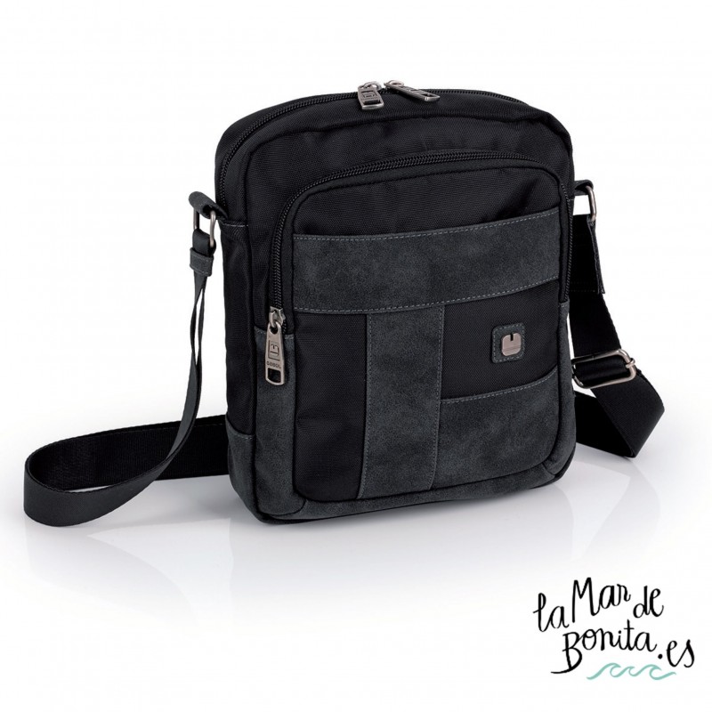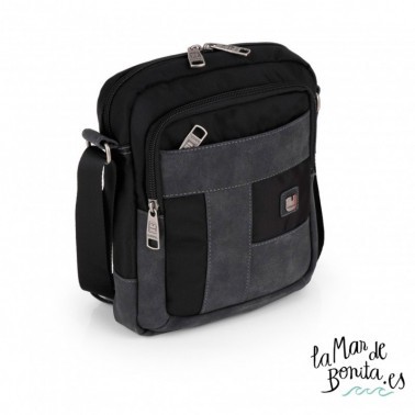 Bandolera masculina de color negro - medidas 20x24x8 cm interior forrado - fabricada en nylon y piel sintética, cuenta condos compartimentos forrados con cremallera.Asa ajustable y regulable. Textura suave.La línea bremen de Gabol es el complemento masculino ideal por su comodidad y funcionalidad, por ello cuenta con 2 años de garantía.