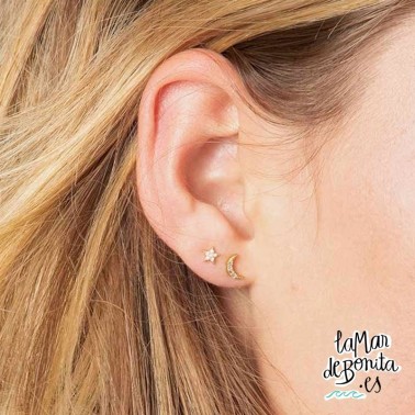 Pendientes Lunas y Estrellas tiny Studs Chapado Oro Natural Life