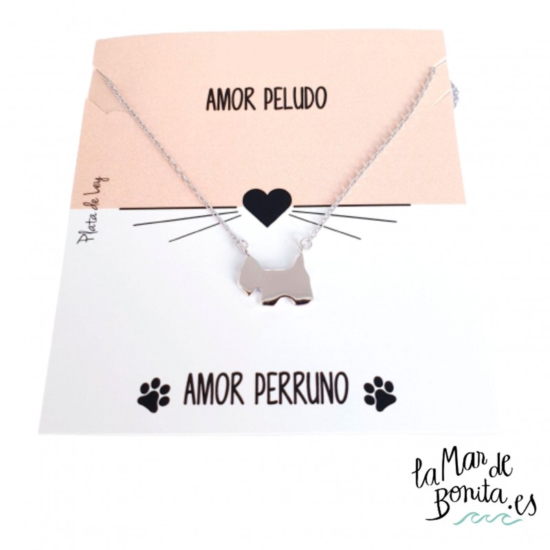 El amor a los miembros más peludos de la casa es algo fácil de sentir, pues son pequeños o grandes seres que nos alegran el día, su amor es incondicional y harían lo que fuera por nosotros... y nosotros por ellos. Si quieres que tu amor por tu perro se visualice todos los días, en la joyería de La Mar de Bonita tenemos esta bonita gargantilla realizada en plata 925 y con baño de rodio.