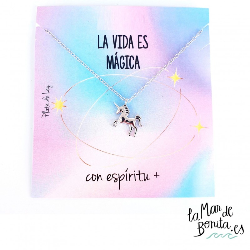En la joyería de La Mar de Bonita creemos en la magia, en la magia de las cosas bonitas. Por eso te ofrecemos esta gargantilla de unicornio realizada en plata 925 y con baño de rodio. Porque la vida es mágica y si la vives con espíritu positivo, será más mágica aún.