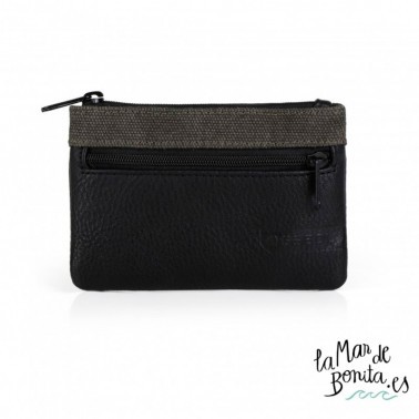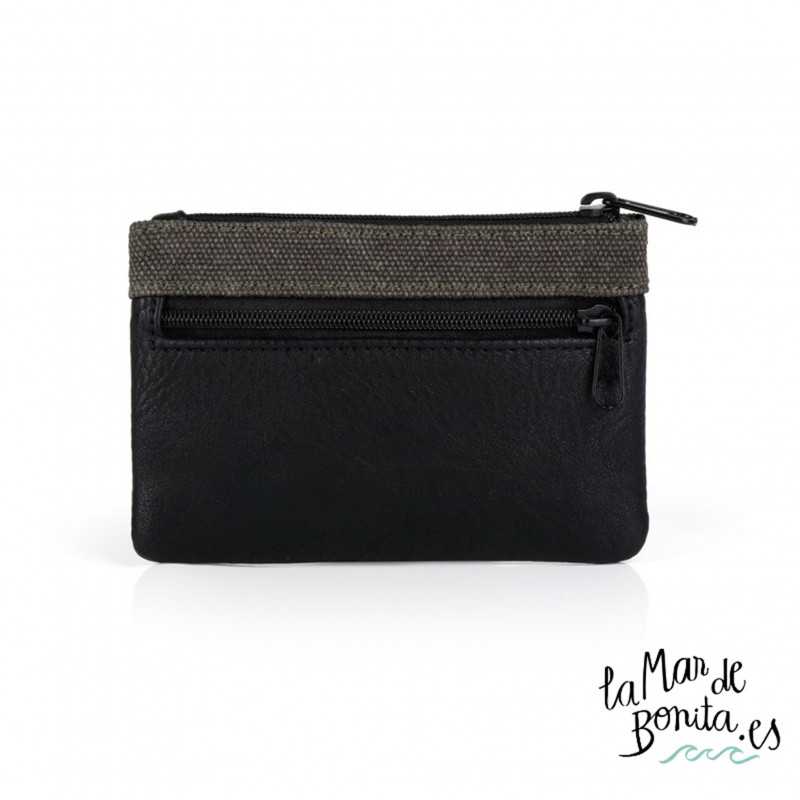 Billeterode caballero FENIX con bolsillo frontal y principal con cremmalera, consta de ranuras a modo de tarjetero para llevar todo bien organizado. Forro interior liso y exterior en textil color kaki con piel sintética en color negro.