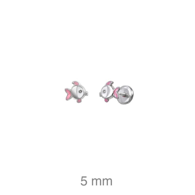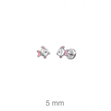 Pendientes Pez Rosa Esmaltados dormilones en plata 925