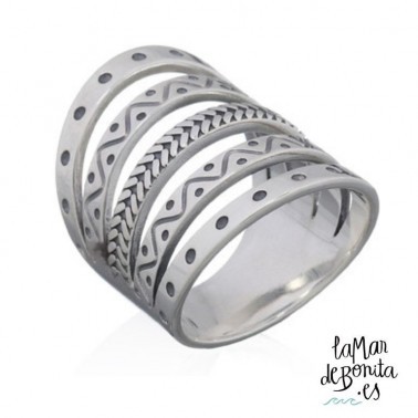 En la joyería online de La Mar de Bonita te proponemos hacer un regalo muy espacial. Este anillo de plata de ley de estilo étnico. Una original pieza que añade un toque de brillo a tu mano a través de los pequeños diseños que podrás observar por todo su perímetro. Un anillo étnico que te ayudará a completar tus looks de estilo boho chic. Cada anillo de plata está diseñado para mujer y también unisex con plata de ley 925. Los anillos que te presentamos están pensados para mujer, pero no son exclusivos para chicas, también pueden llevarlos aquellos chicos que les guste el estilo, os invitamos a perderos entre los anillitos más originales y divertidos que podréis encontrar en nuestra web.