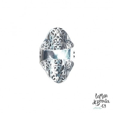 En la joyería de La Mar de Bonita trabajamos todos los estilos y diseños para hacerte llegar peizas únicas y diferentes que no podrás encontrar en ningún otro sitio. Como este anillo con forma de mandala, una forma perfecta, que hace alusión a la proporción y armonía.