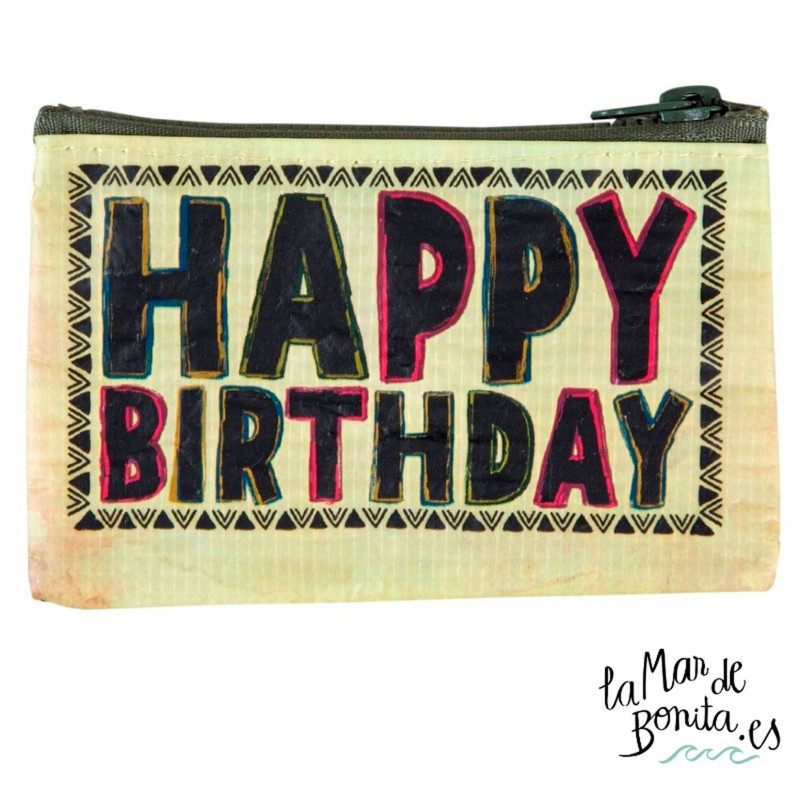 Monedero de tamaño es ideal para mantener los artículos secos y seguros. Resistente al agua con un acabado con diseño gráfico de vivos colores. Dispone de cremallera negra cosida con un extractor. Fondo beige con mensaje “HAPPY BIRTHDAY” (Feliz cumpleaños)