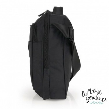 Bandolera de material reciclado Kendo Eco resistente al agua. Capacidad para tablet de 10". Fabricada con material de plástico reciclado (rPET) y libre de plástico PVC. Está elaborada con material reciclado y además es resistente al agua.