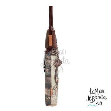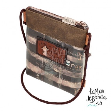 El asa es una bandolera regulable para que la puedas adaptar a la altura de lo que necesites en cada momento. El interior está forrado con un original tejido estampado con motivos de la colección, y cuenta con bolsillos.