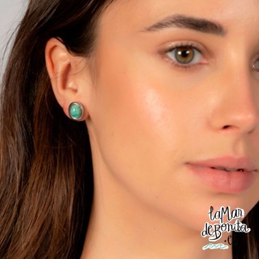 Si estás pendiente de conseguir los mejores pendientes, con Ciclón y La Mar de Bonita y su colección Ventura te ofrecen estos pendientes mini bañados en plata con piedra Amazonita en color verde. Miden 11 mm y son de cierre a presión. Cómpralos ahora y ya no estarás pendiente de lucir La Mar de Bonita.