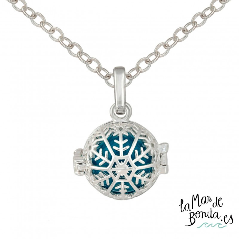 En la joyería de La Mar de Bonita pensamos que los llamadores de ángeles son el regalo ideal para hacer a esa persona que tanto quieres, o para darte tú misma el gusto de cuidarte. El llamador de ángel es una pieza de joyería con un diseño en forma de esfera en plata, y en este caso tiene forma de copo de nieve con un cascabel en su interior de un bonito color azul.