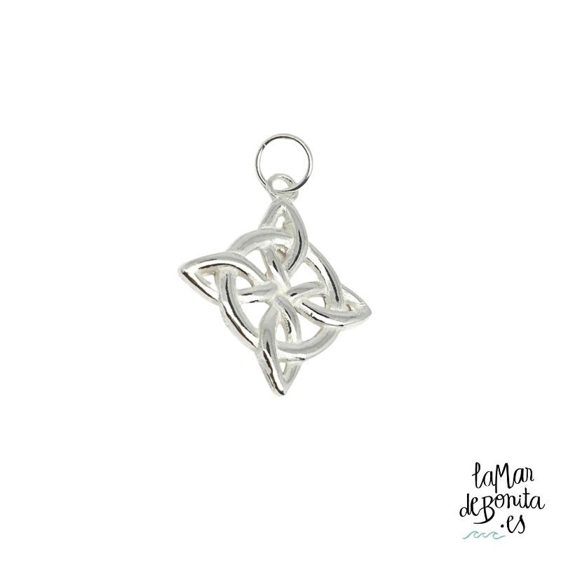Este colgante, es un potente amuleto de protección capaz de rechazar los conjuros lanzados a la persona que lo posea. Este colgante nudo de las brujas, es capaz de crear y repeler los hechizos. Cuenta la leyenda, que es un simbolo mágico formado por cuatro puntas en forma de aspa, muy parecido al trisquel o trinquesa celta, unidas de forma infinita entre sí por un circulo que significa la perfección. Este simbolo, es un antiguo simbolo pagano que usaban las personas que trabajaban con la mágia. La relación del Nudo de las Brujas con las antiguas practicas de mágia, está basada en los hechizos de las ataduras y rituales más ancestrales que se conocen, elavorados y ejecutados con cordeles de fibra natural de cañamo y en otras ocasiones con la imagen de alguna figura.