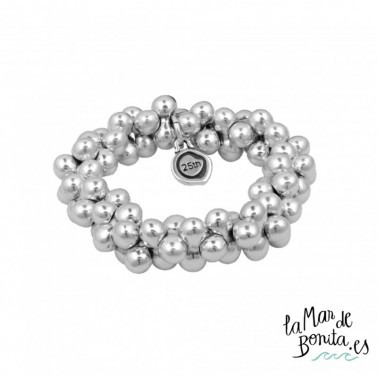 Las mejores novedades en la bisutería de La Mar de Bonita. Esta pulsera de metal con chapado en plata es un complemento para mujer que seguro supone un acierto para quien lo regala. Con un espectacular diseño consistente en esferas pegadas entre sí, es el regalo perfecto para comemoraciones, fechas especiales o simplemente por el placer de verla sonreír.