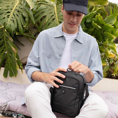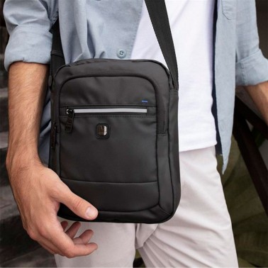¡Lo estabas pidiendo! Ese complemento original, ese regalo perfecto, esta bandolera para hombre. De dos compartimentos, en color gris oscuro, con detalle reflectante en cremallera, y fabricada con poliéster resinado y libre de plásticos PVC, esta es la nueva bandolera que estabas buscando para él.