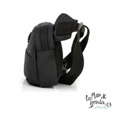 En La Mar de Bonita te ofrecemos los mejores complementos, también para él, como esta riñonera de la colección Flash de Gabol, realizada en poliéster y libre de plásticos PVC. Al estar libre de plásticos PVC, puedes decir que con esta riñonera contribuyes a la conservación del medio ambiente. Y también podrás conservar con total tranquilidad todas tus pertenencias en una riñonera donde todo es espacio seguro.