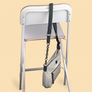 Dispone de un tirante largo para que lo ajustes según tus necesidades, su diseño es muy actual y funcional, con un línea degrises elegantes y en su frontal un diseño con formas naturales que le dan un toque diferente y hacen que su diseño sea versátil y elegante, lo que te permite usarlo en cualquier tipo de situación.