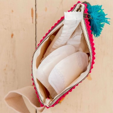En La Mar de Bonita podrás encontrar las bolsas más bonitas para llevar todos los suministros que necesitas cuando tienes el período. Cada bolsita viene con una útil tarjeta que contiene una lista increíblemente informativa de mitos sobre la menstruación escrita por la Dra. Marta Pérez-Chomat. Es el tipo de información que toda mujer desearía haber tenido cuando era joven. Lo mejor de todo es que el 10% de los beneficios de estos productos se dona a Renewing Dignity para contribuir a su misión.