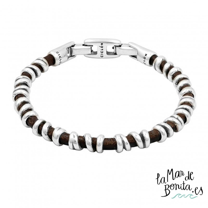 En La Mar de Bonita solo traemos para ti las mejores opciones de joyas también para hombres, como esta pulsera de Ciclón para hombre, diseñada en Madrid de manera artesanal, por lo que cada una de las piezas es considerada un modelo único. Realizada con metal y cuero, te presentamos una combinación de materiales que aporta la elegancia del metal y el desenfado del cuero. Es un innovador diseño con toda la personalidad de Ciclón, hecho de manera artesanal 100% en instalaciones de Madrid. La garantía de las piezas es de 2 años.
