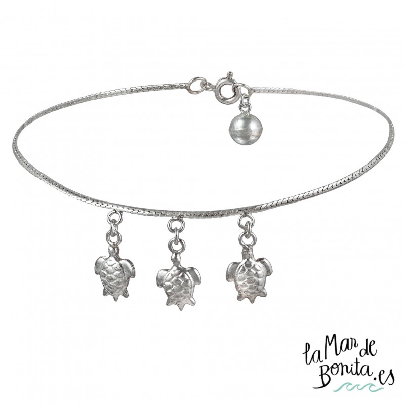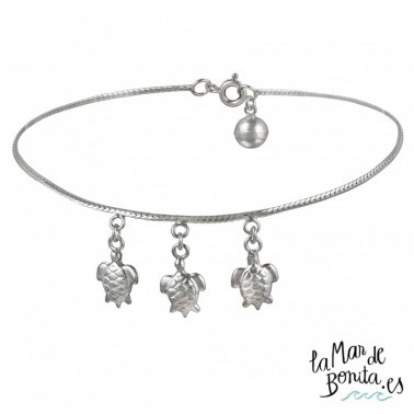 Tobillera 3 Tortugas Cola de ratón en Plata 925