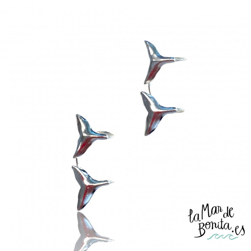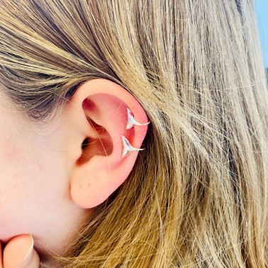 Los pendientes cola de ballena están fabricados en plata de ley 925. Son unos pendientes de tamaño mini con forma de cola de ballena acabada en brillo. Por su tamaño es perfecto para llevarlo en el segundo o tercer agujero combinado con aros o pendientes de mayor tamaño.