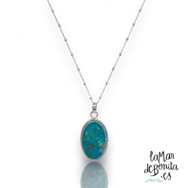 En la joyería online de La Mar de Bonita tenemos una selección de los mejores regalos para sorprenderla. Este colgante ovalado cincelado, realizado en plata 925 y en turquesa estamos seguros que encantará a todo tipo de mujer, sea cual sea su estilo. Y es que sin duda uno de los poderes más destacados de la turquesa es que está relacionado con ser un amuleto para la protección y suerte. Pero hay muchos otros propósitos y beneficios de la piedra turquesa, como aliviar el dolor del corazón, calmar el alma y actuar contra la ansiedad.