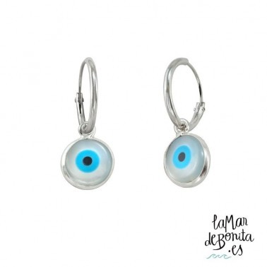 No lo pienses más y adquiere ya estos maravillosos pendientes de aro con forma de ojo turco, hechos en plata 925 y nácar. ¡Te encantarán!