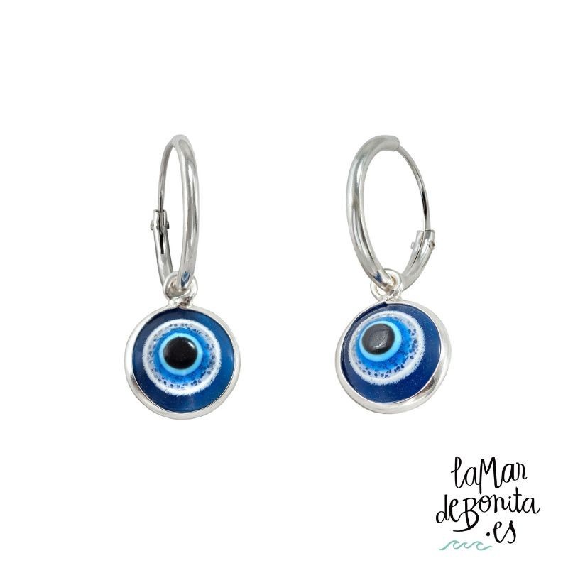 Aros con Ojo Turco Azul en cristal 10 mm Plata 925