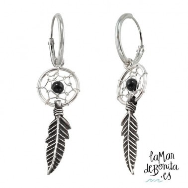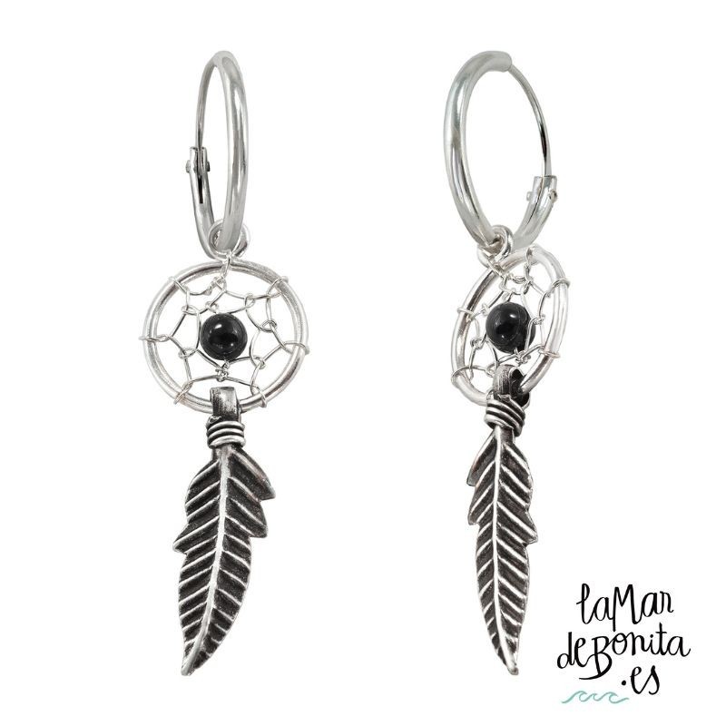 Aros Atrapasueños con Pluma Bola Negra 10 mm 925