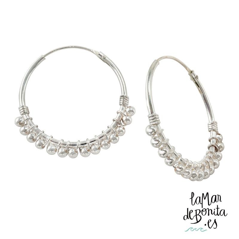 En la joyería online de La Mar de Bonita apostamos por hacer relucir tu belleza natural, por eso te proponemos estos pendientes de aro con bolitas en plata 925, que son la elección perfecta para ti. Imagina llevar estos pendientes puestos, brillando con cada movimiento que hagas. La textura suave y elegante de las bolitas de plata 925 es simplemente irresistible. Además, la plata 925 es conocida por ser un material resistente y duradero, por lo que estos pendientes serán tus favoritos por mucho tiempo.