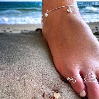 ¡Sorprende con el anillo más brillante y elegante de La Mar de Bonita! Este anillo para pie de plata de primera ley es la adición perfecta a cualquier colección de joyas. Conuna deslumbrante zirconita blanca incrustada y con su espiral curva, este anillo es una verdadera obra de arte.