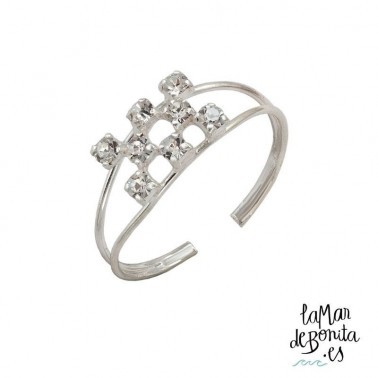 Anillo pie 8 zirconitas blancas