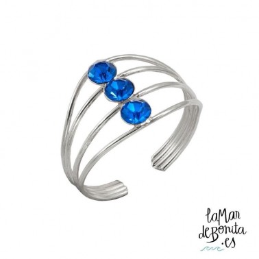 ¡Hola! Si buscas un anillo elegante y lleno de encanto, ¡este es el indicado para ti! Te presentamos nuestro anillo de plata con 3 zirconitas azules encastradas en puentes, elaborado en plata de primera ley.
