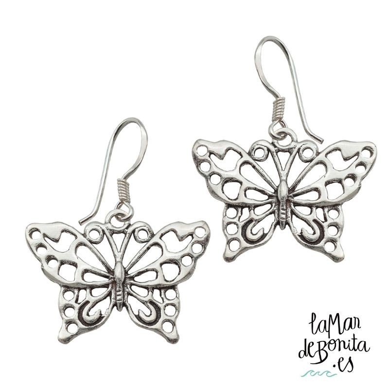 Pendientes Mariposa Calada 22 mm en Plata 925