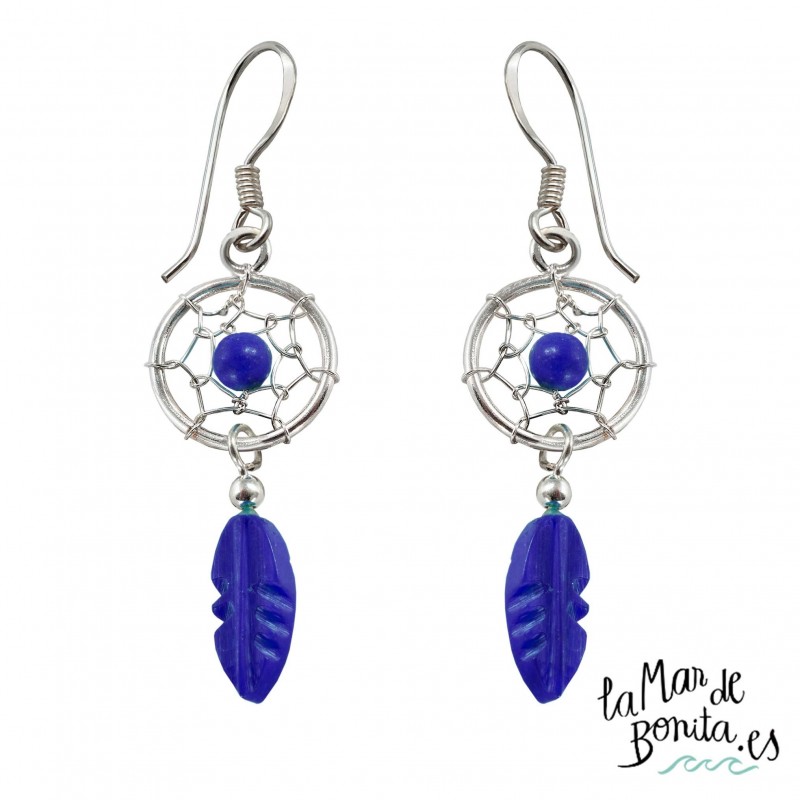 Pendientes Atrapasueños pluma Lapislazul Plata 925