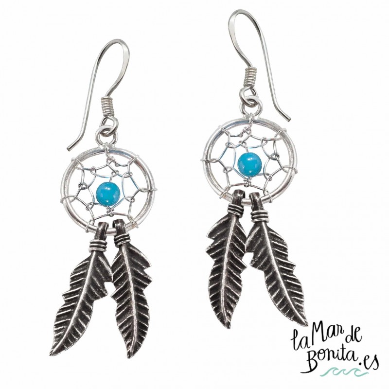 Pendientes Atrapasueños Bola Turquesa Plata 925