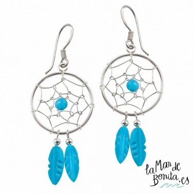 Pendientes Atrapasueños Plumas Turquesas Plata 925