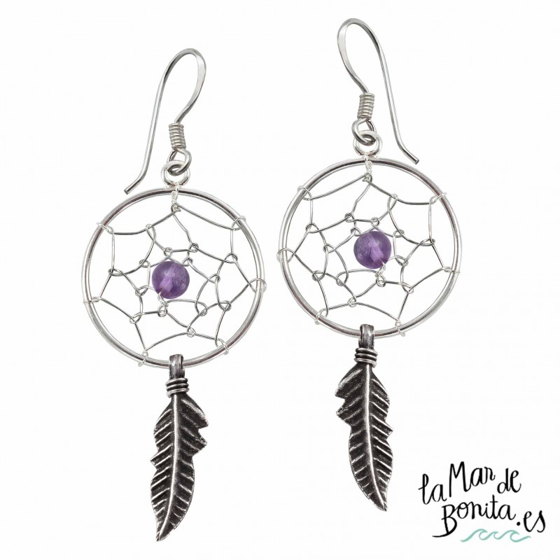¡Embárcate en un viaje de sueños y protección con nuestros Pendientes Atrapasueños con bola de amatista en plata 925!
