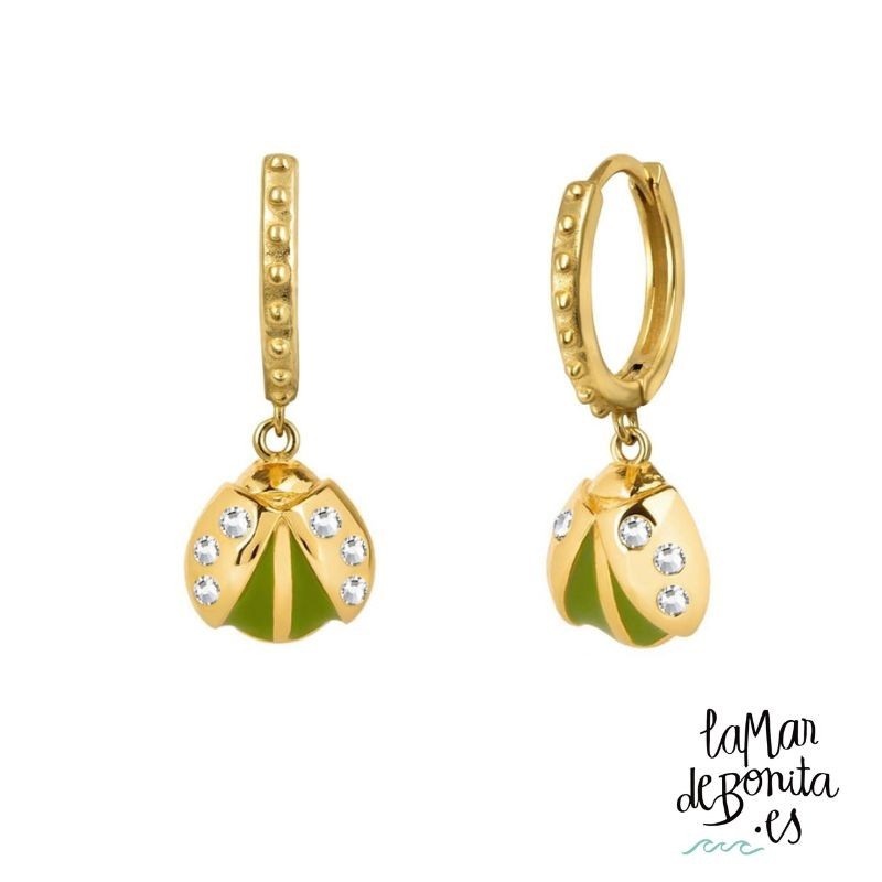 Criollas Mariquita verde Circonita Brass Baño Oro