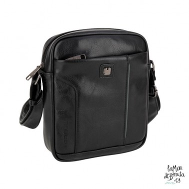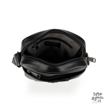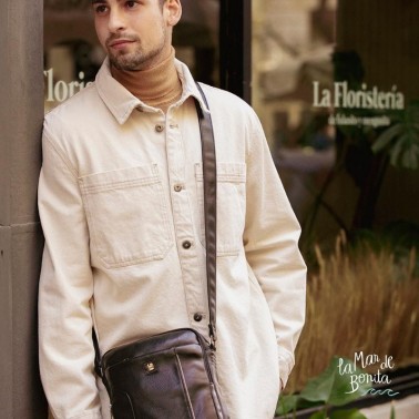 Reportero Bandolera caballero de la marca Valenciana Gabol, fabricado en Piel sintética vegana, con materiales reciclados y sostenibles libres de PVC. Versatil, resistente y elegante. Muy combinable en looks Casuals de diario, como también con los más vestidores de fin de semana o festivos.Cremalleras reforzadas de alta fricción. Anillas de acero cinzado. Compacta y elegantísima.