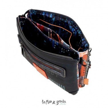 Esta bandolera rectangular de 2 compartimentos forma parte de la colección Anekke Contemporary. Es de tamaño medio a grande y cuenta con gran capacidad interior, así como forro y bolsillos. El asa es regulable, por lo que podrás adaptarla siempre al largo que prefieras.